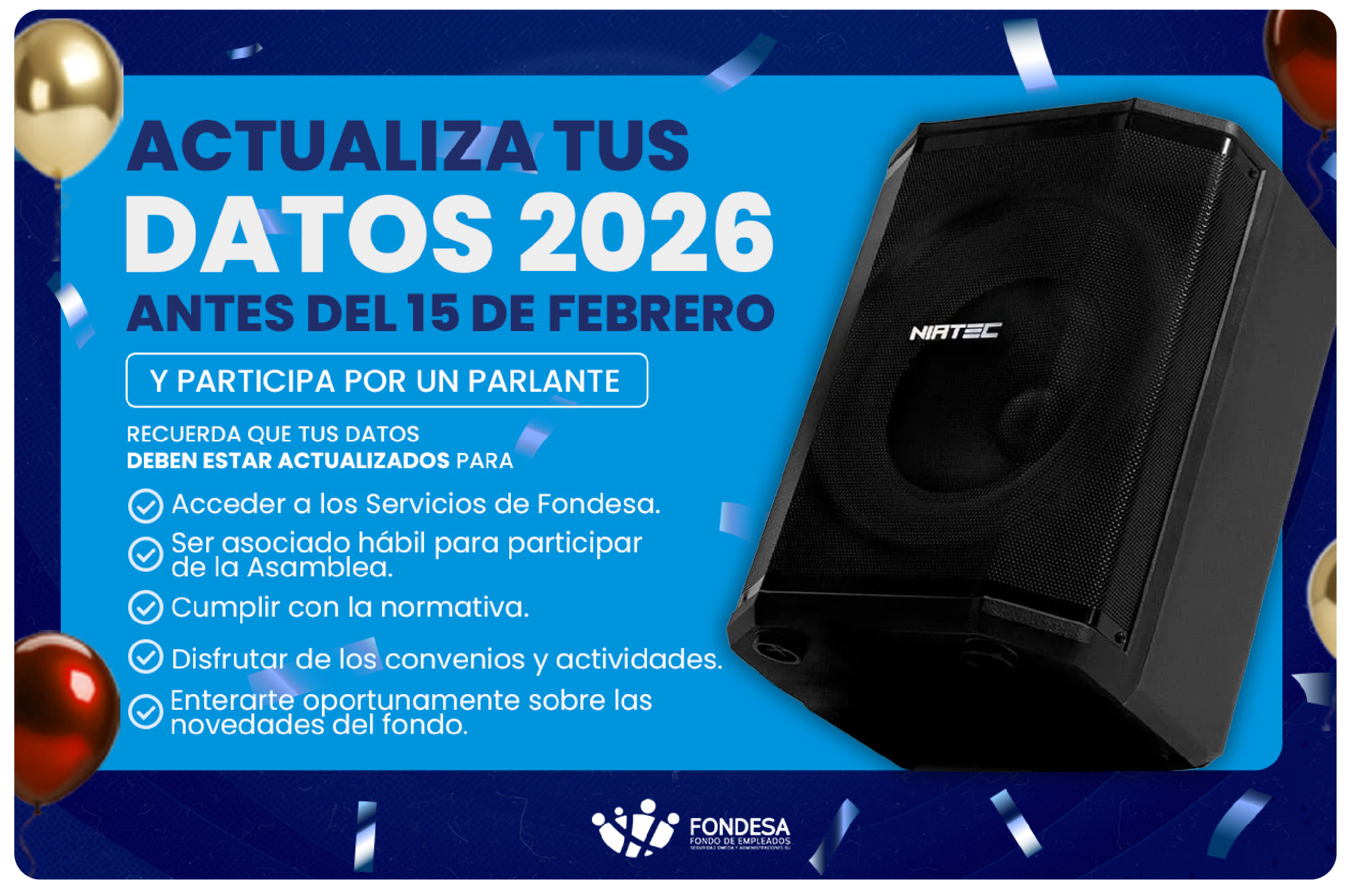 Estimado Asociado recuerda que tus datos deben estar actualizados para: